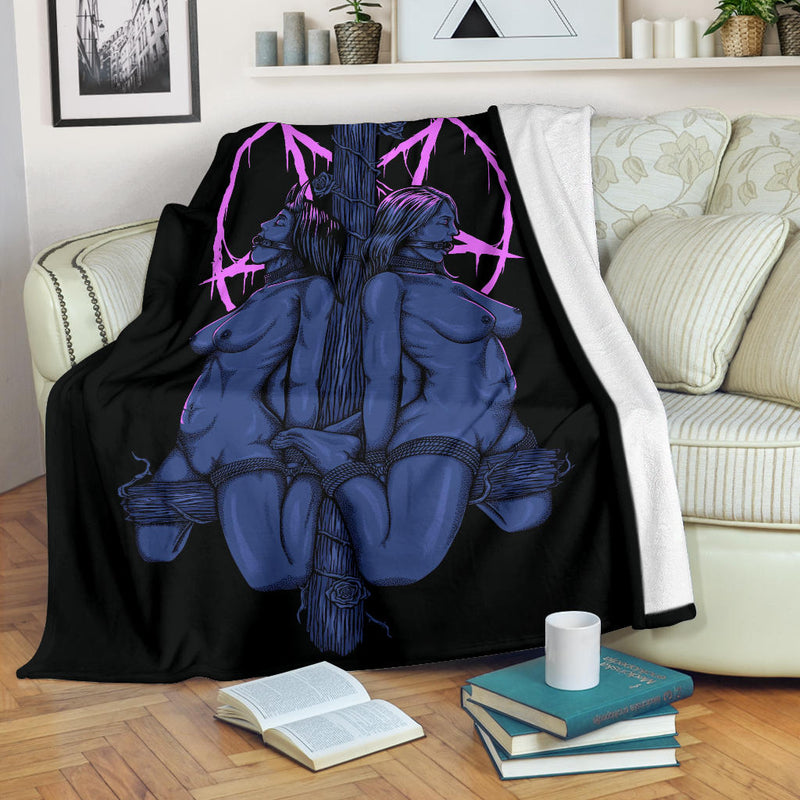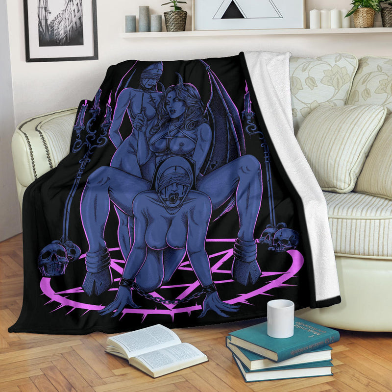 Skull Satanic Pentagram Candle Satanic Cross Erotic Possession Blanket Sexy Wild Blue Pink
