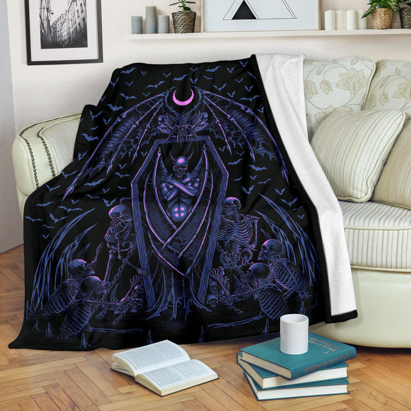Skull Baphomet Goat Demon Frenzy Blanket Night Blue Pink