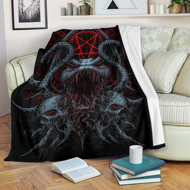 Skull Skeleton Satanic Goat Satanic Pentagram Flame Color Blanket