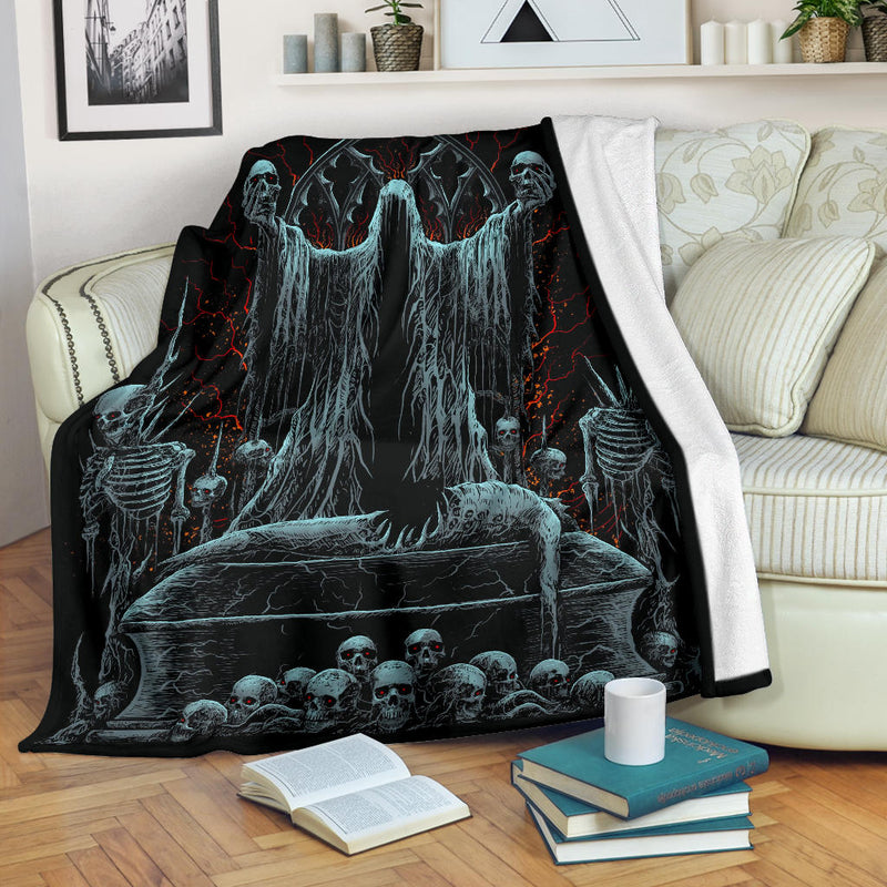 Skull Hooded Demon Impaled Coffin Shrine Blanket Color Version