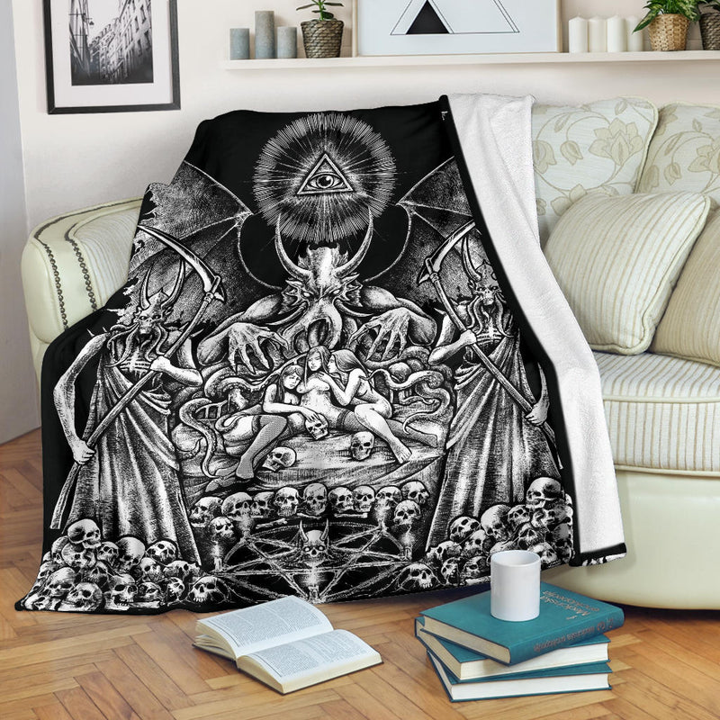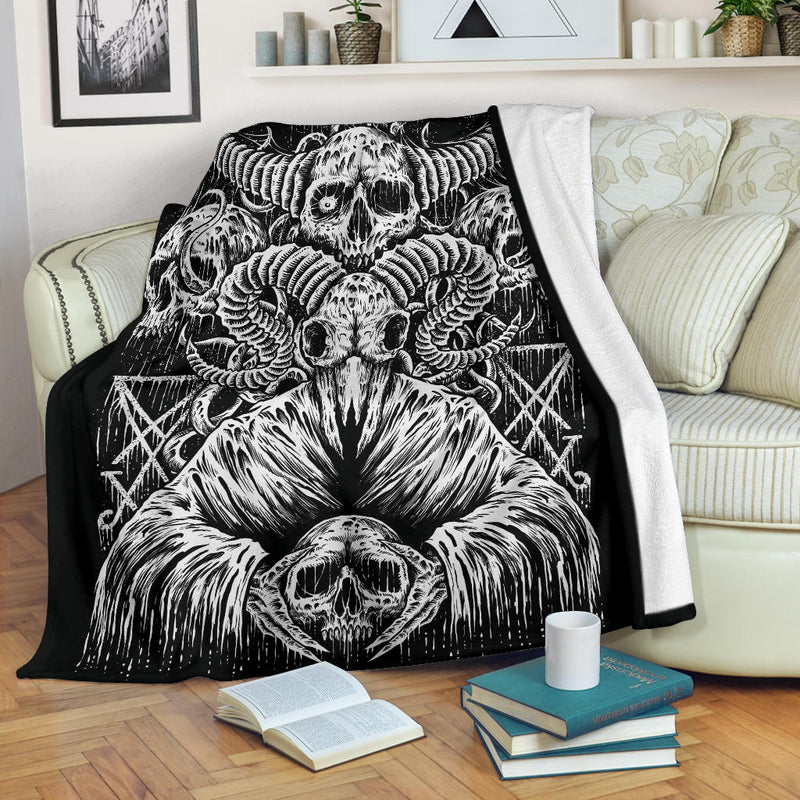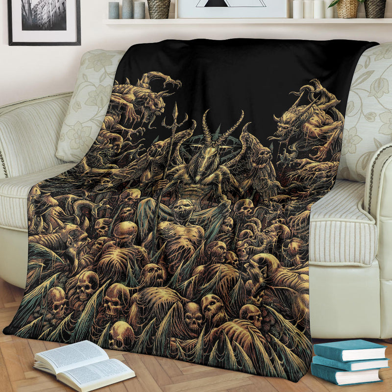 Skull Winged Satanic Goat Demon Zombie Galore Throne Blanket Color