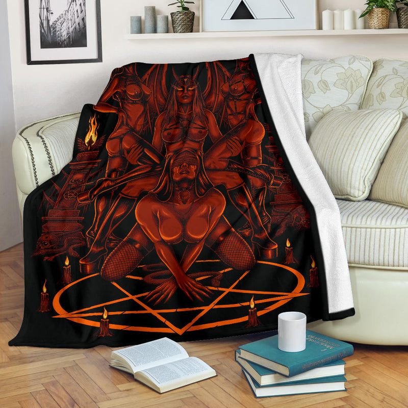 Skull Satanic Pentagram Serpent Impaled Erotic Demon Foursome Blanket Hellfire Color
