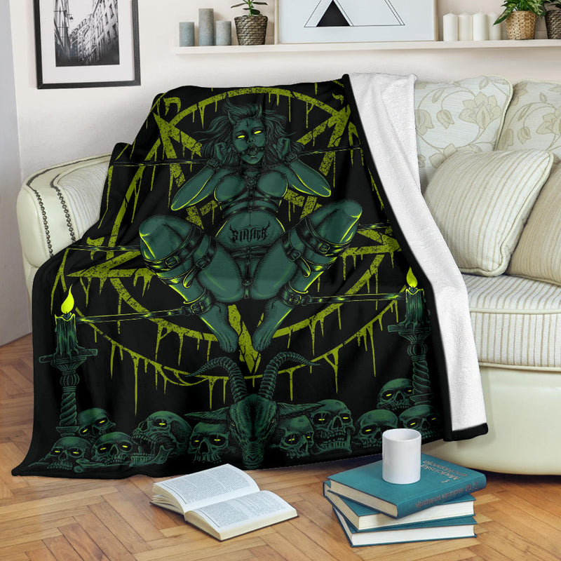 New! Skull Satanic Baphomet Goat Satanic Pentagram Lust God Naughty And Lovin It Cocktail Flesh Party Blanket Sexy Wild Blue Pink
