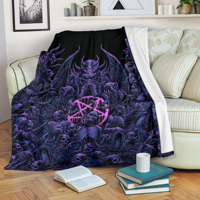Skull Demon Satanic Pentagram Cthulhu Blanket Wild Night Blue Pink