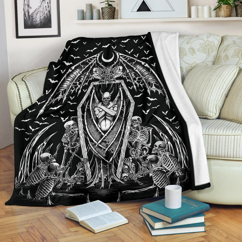 Skull Skeleton Satanic Goat Eternal Impaled Torment Skull Candle Trophy Blanket Color Version