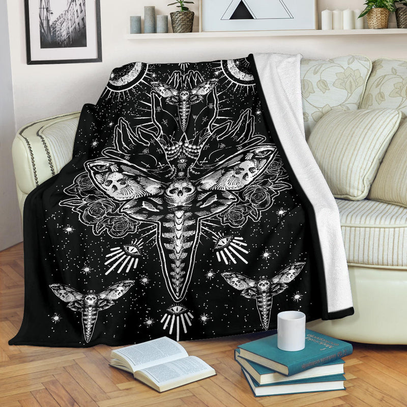Skull Moth Secret Society Occult Style Blanket Black And White