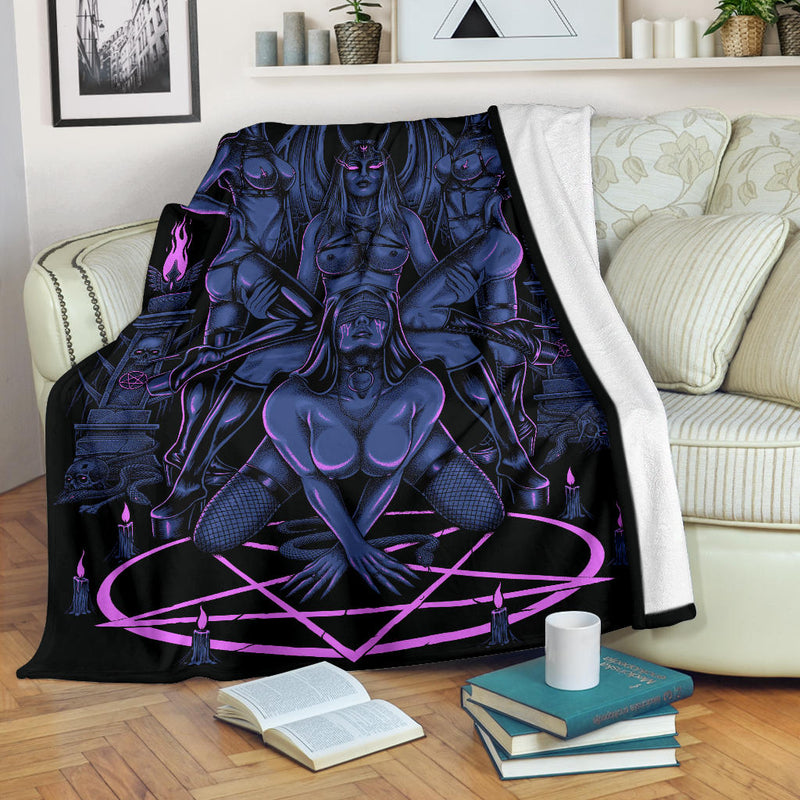Skull Satanic Pentagram Serpent Impaled Erotic Demon Foursome Blanket Sexy Blue Pink