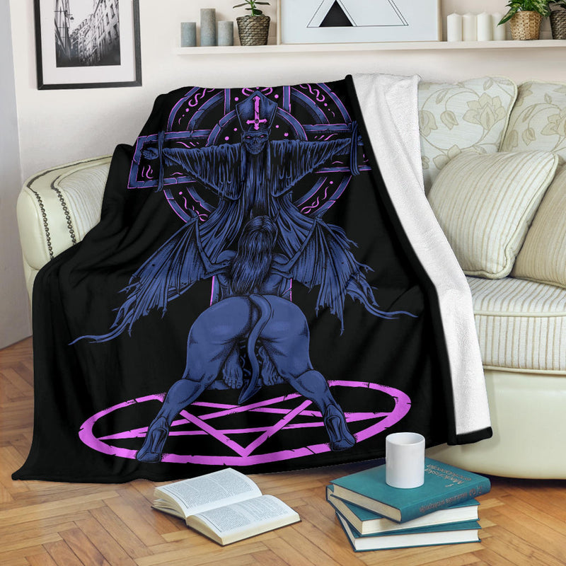 Skull Satanic Pentagram Demon Priest Crucified Blanket Erotic Blue Pink