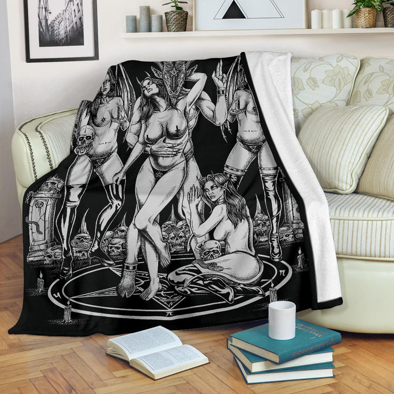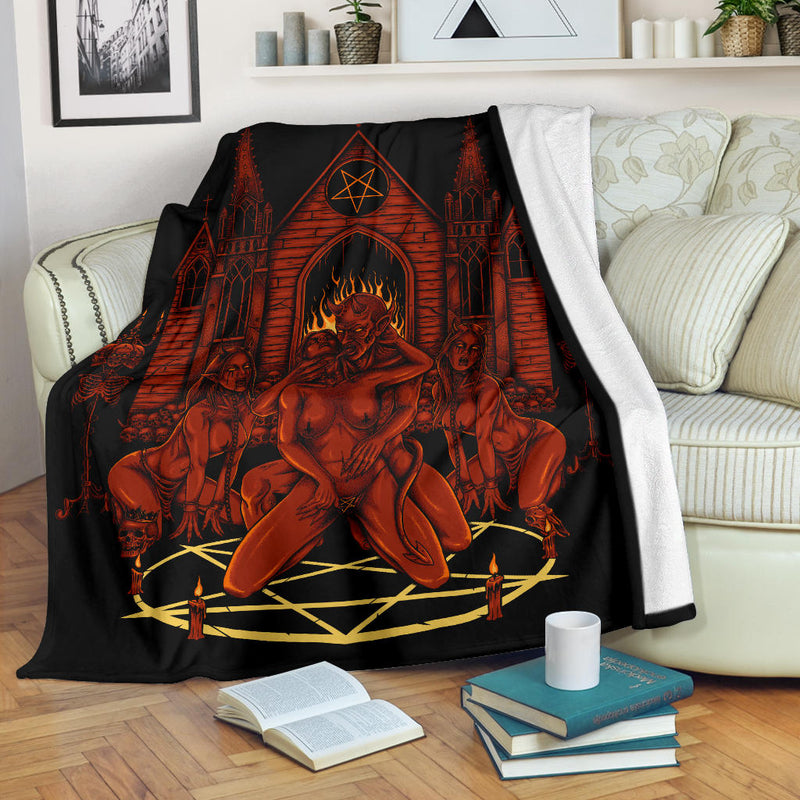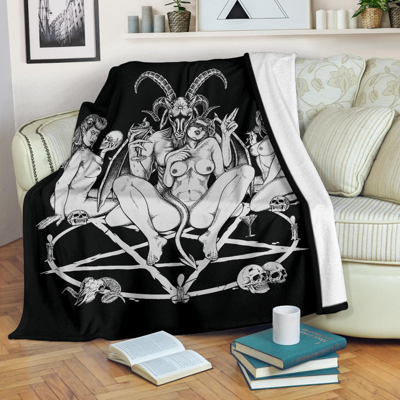 New! Skull Satanic Baphomet Goat Satanic Pentagram Lust God Naughty And Lovin It Cocktail Flesh Party Blanket Color