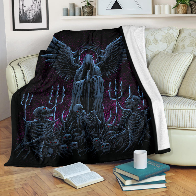 Skull Skeleton Gothic Hooded Wing Demon Sword Blanket Awesome Night Blue Pink