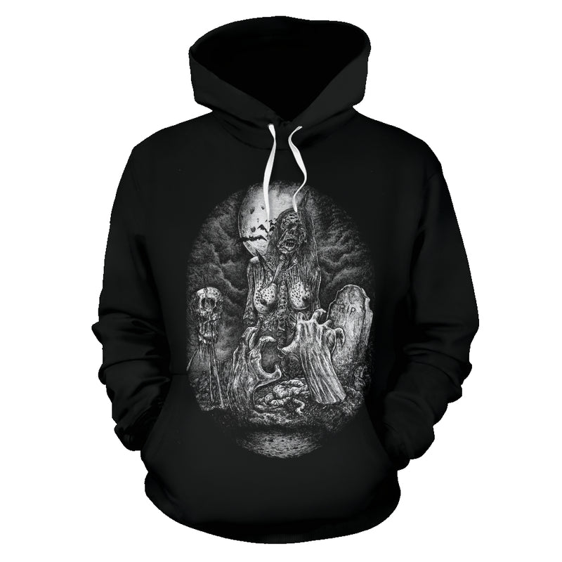Skull Zombie Crow Impaled Skull Satanic Demon Hoodie