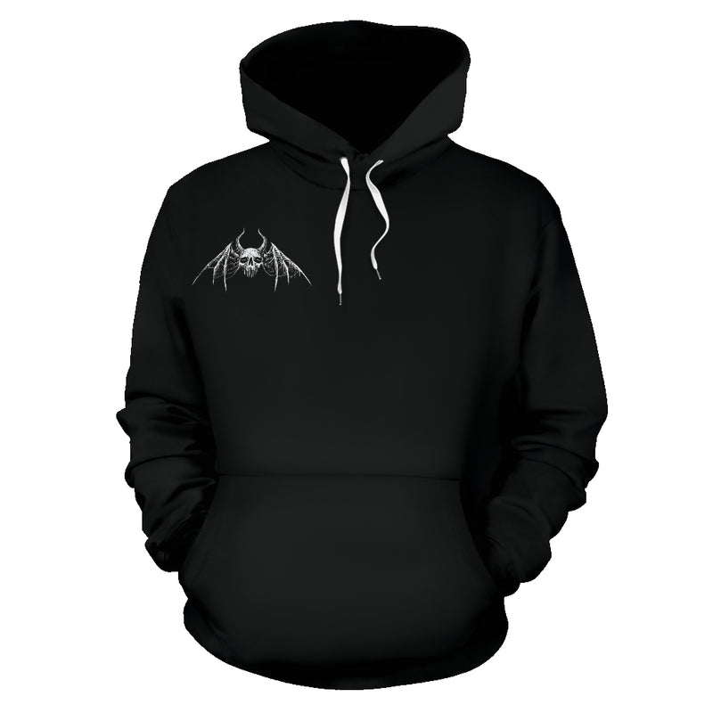 Skull Skeleton Bat Skull Death Shrine Hoodie Black And White