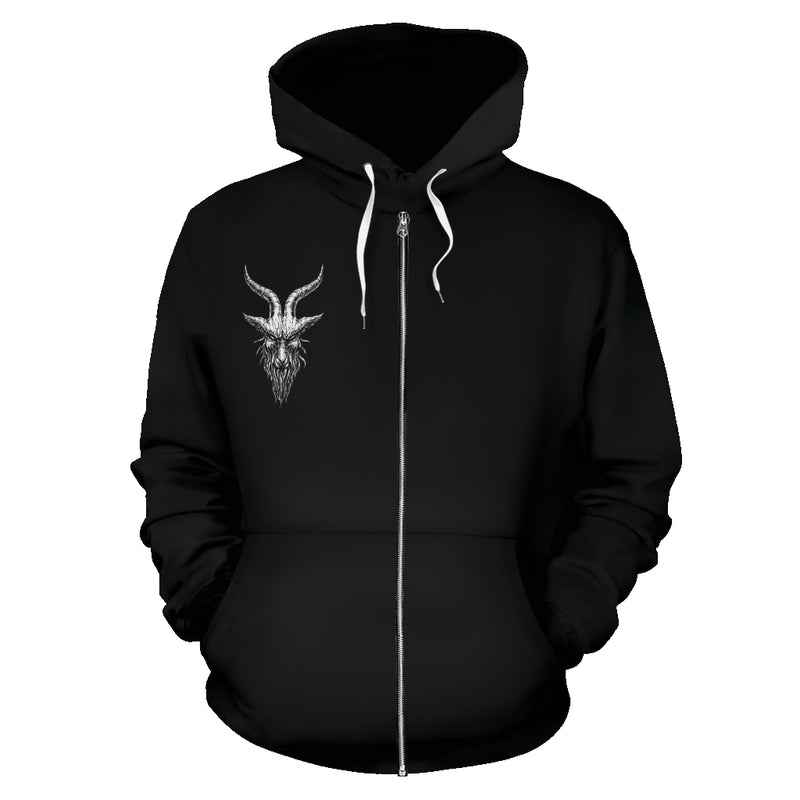Skull Satanic Demon Goat Satanic Pentagram Serpent Zip Up Hoodie