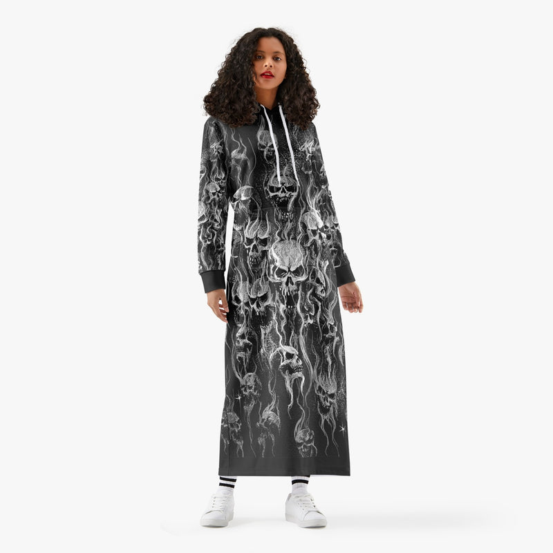 Skull Demon Smoke Long Style Women's Hoodie Dress