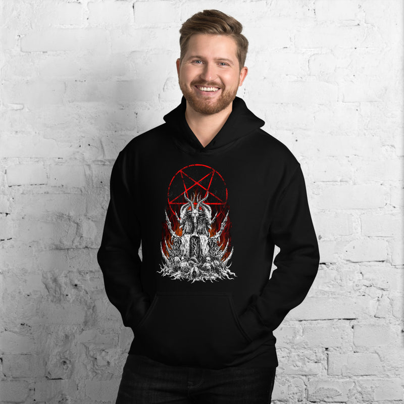 Skull Satanic Goat Satanic Pentagram Flame High Quality Gildan Unisex Hoodie