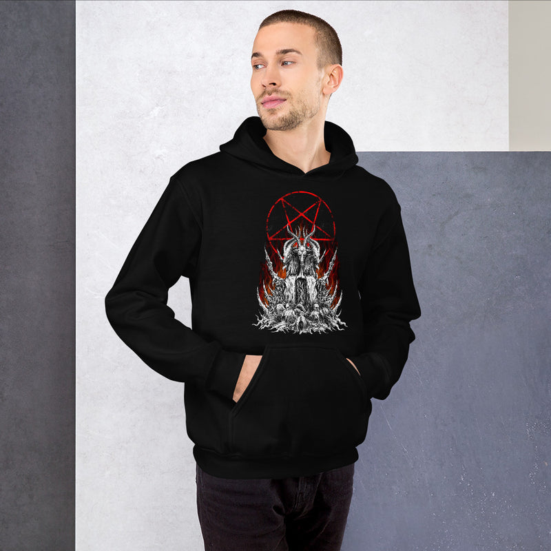 Satanic Baphomet Goat Satanic Pentagram Flame Gildan Unisex Hoodie