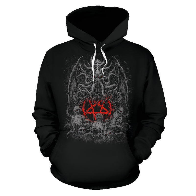Skull Skeleton Bat Wing Demon Octopus Hoodie Silver And Red