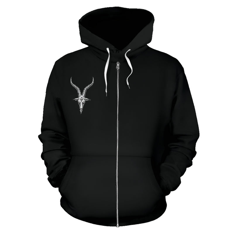 Skull Skeleton Satanic Goat Satanic Pentagram Flame Zip Up Hoodie