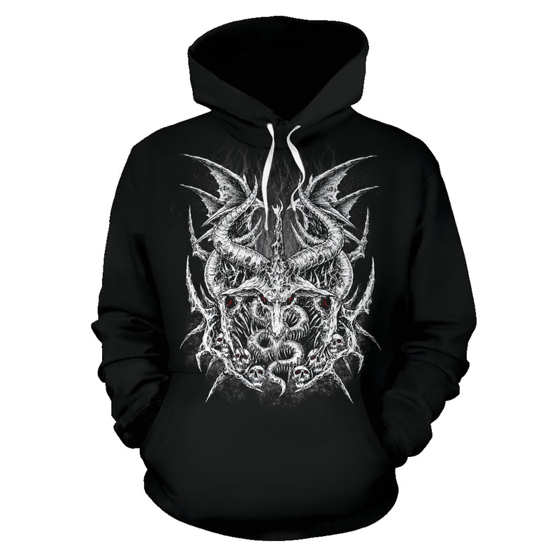 Skull Satanic Bat Wing Demon God Hoodie Dark Version