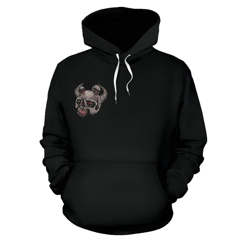 Skull Satanic Bat Wing Demon God Hoodie Dark Version Blank Front