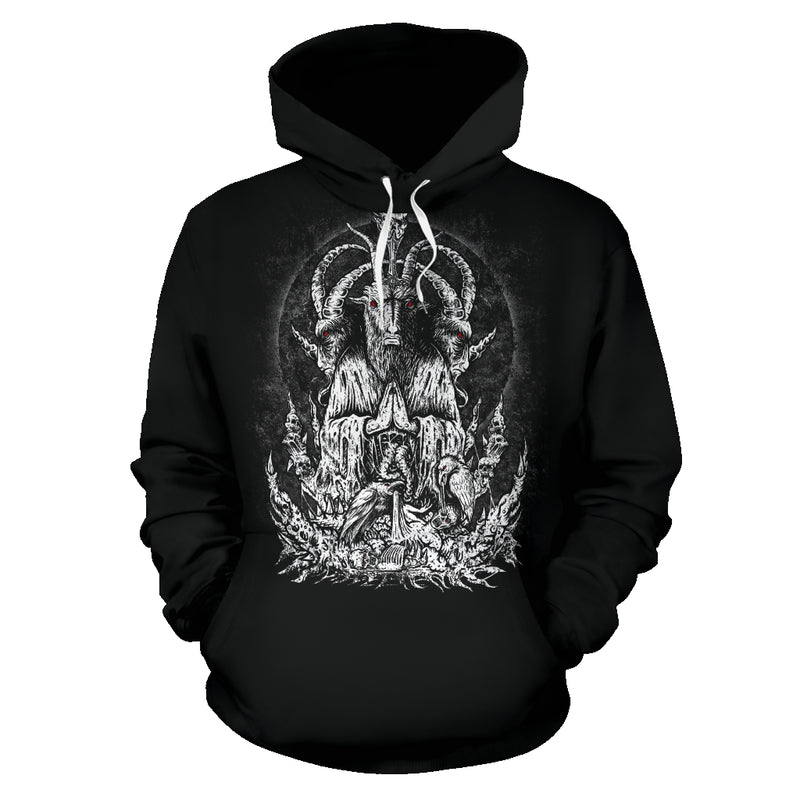 Skull Winged Satanic Goat Demon Zombie Galore Throne Hoodie