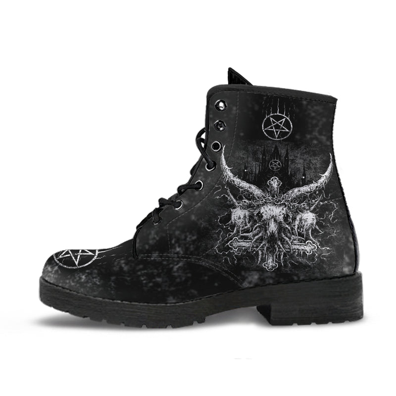 Skull Satanic Cross Crowned Satanic Goat Satanic Pentagram Leather Boots 2