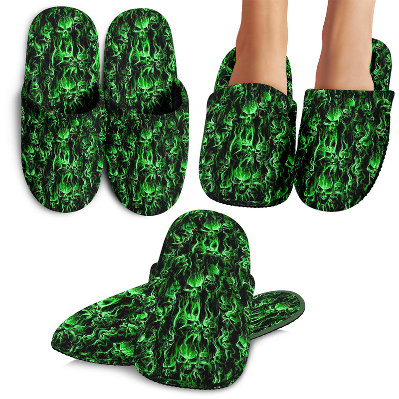 Smoke Skull Cozy House Slippers Awesome Punk Green