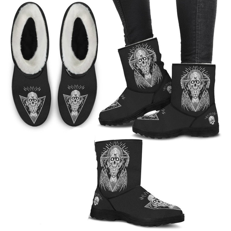 Skull Goth occult Cat handcrafted Faux Fur Boots Black And White Version