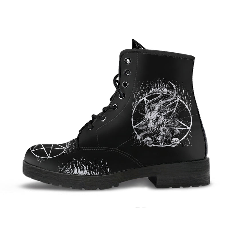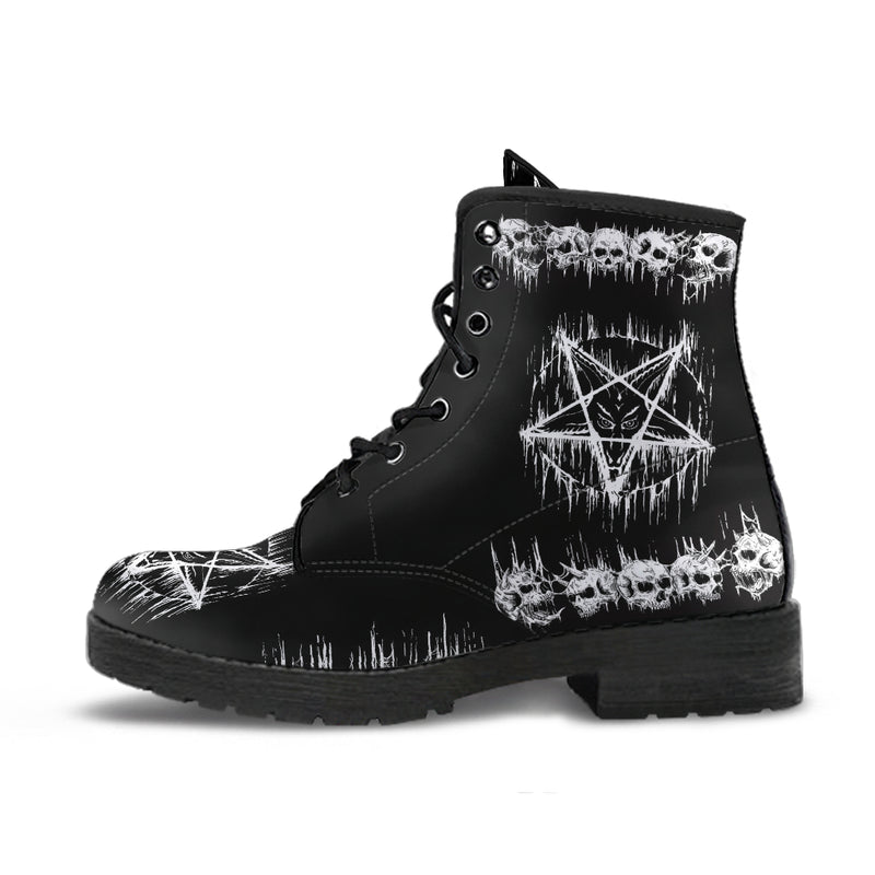 Skull Satanic Pentagram Satanic Goat Demon Serpent Handcrafted Leather Boots