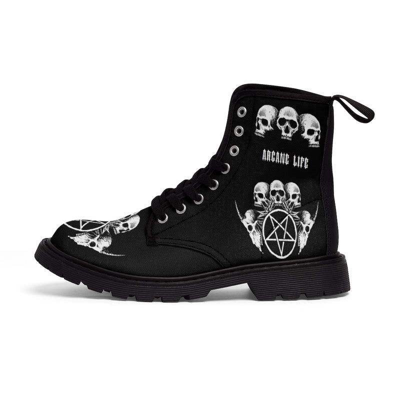 Skull Horn Inverted Pentagram Arcane Life Men's Canvas Boots
