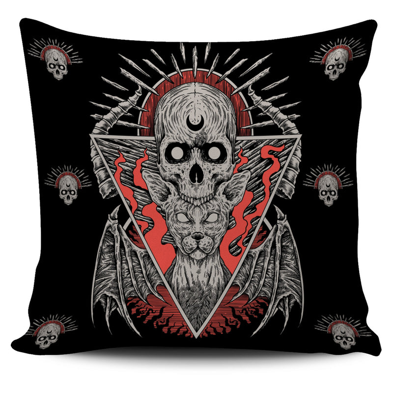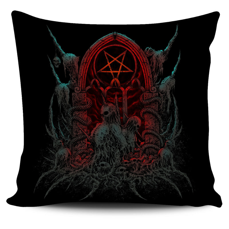 Skull Satanic Pentagram Flame Shrine Pillow Cover Color Version