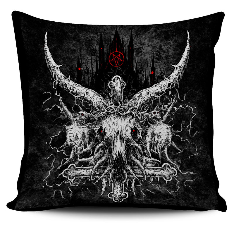 Skull Satanic Goat Zombie Crow Feast Pillow Cover