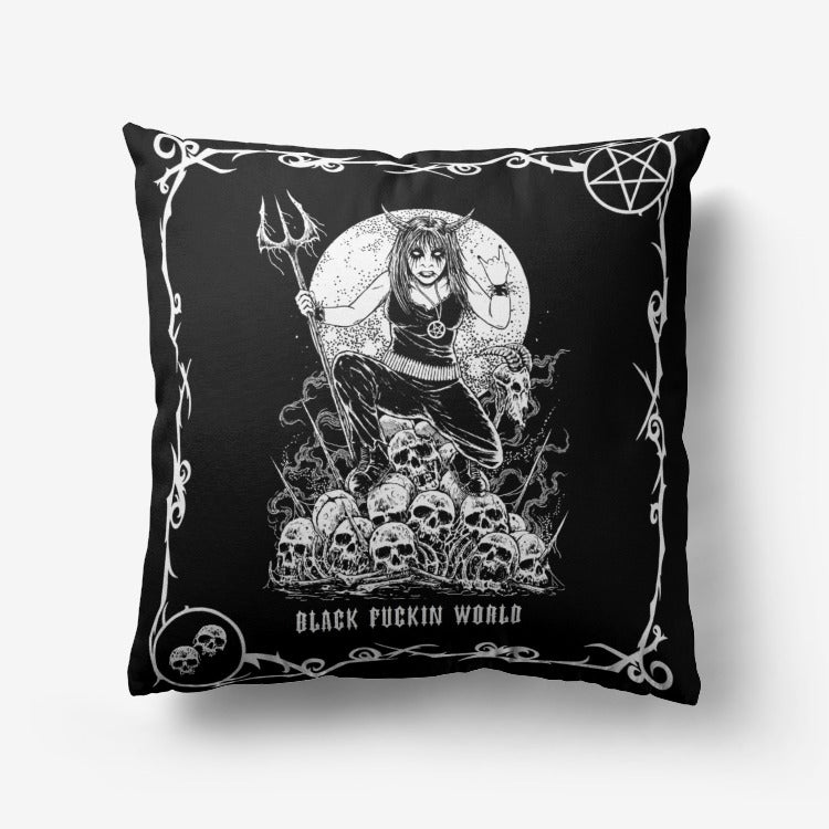 Black Metal Skull Inverted Pentagram Satanic Devil Chick Hypoallergenic Throw Pillow