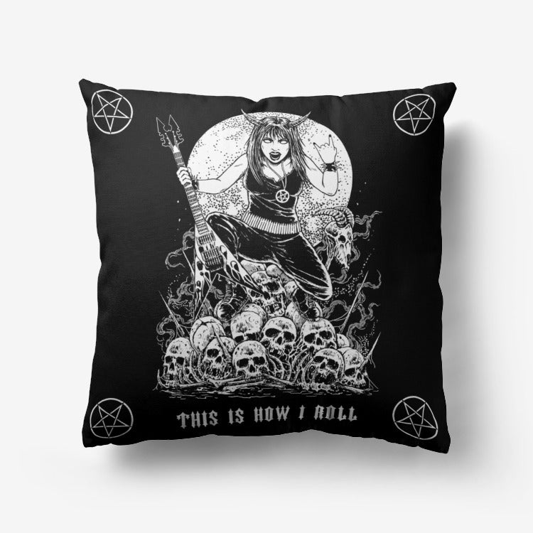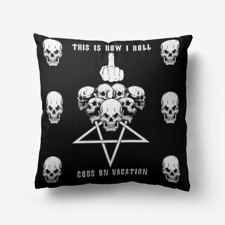 Satanic Skull Inverted Pentagram This Is How I Roll Gods On Vacation Hypoallergenic Throw Pillow