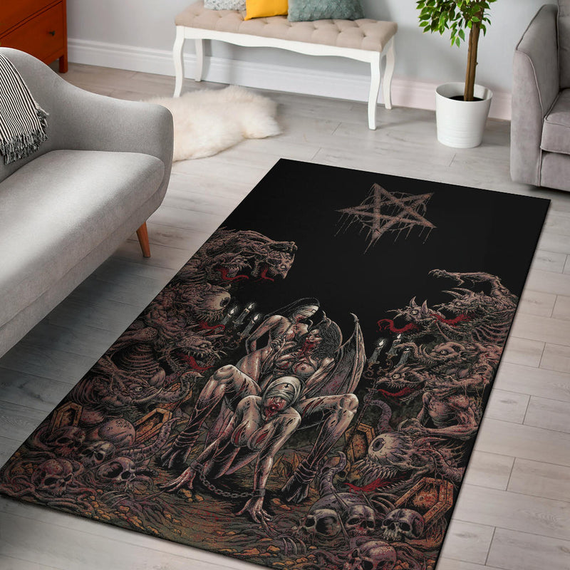 Skull Satanic Pentagram Demon Nymphomania And Loving It Area Rug Color Version