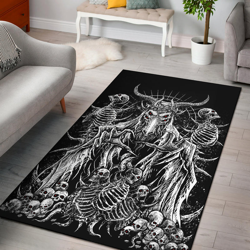 Satanic Demon Skull Skeleton Sword Inverted Pentagram Route 666 Area Rug
