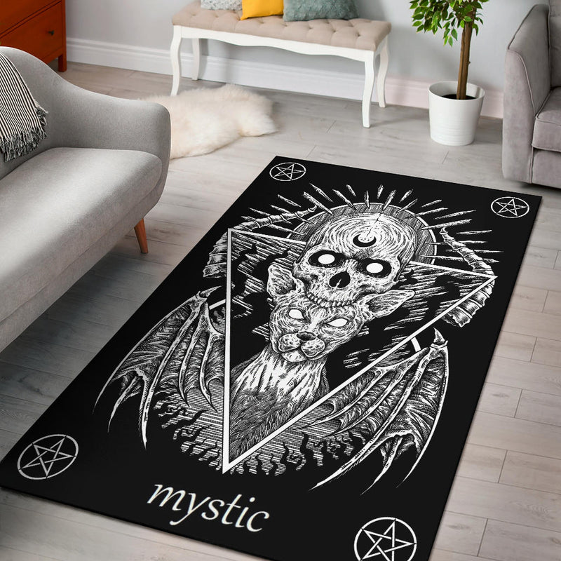 Skull Pentagram Occult Gothic Demon Cat Area Rug