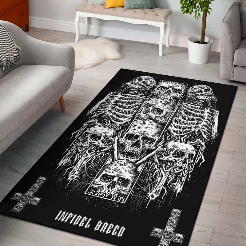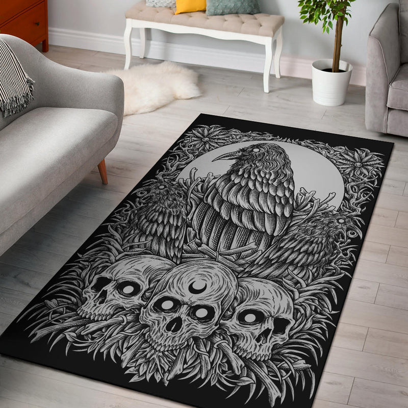 Skull Goth Occult Crow Area Rug Black And White Version