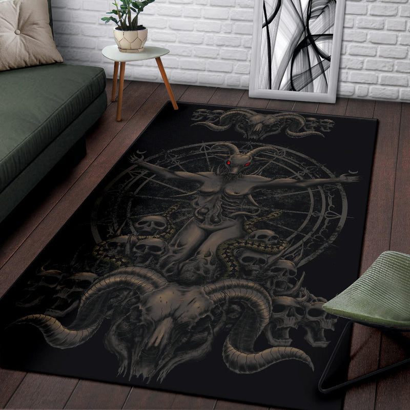 Satanic Skull Demon Goat Woman With Serpents Rust Red Eye Version Area Rug