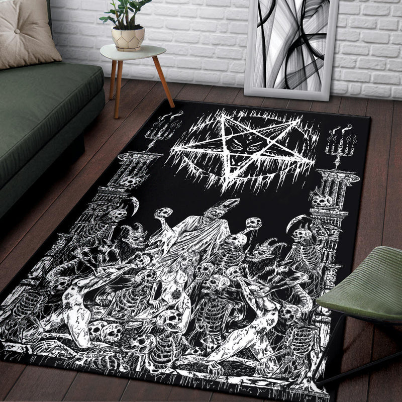 Skull Demon Satanic Pentagram Drip Doom Priest Area Rug