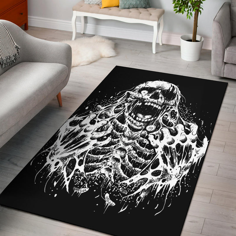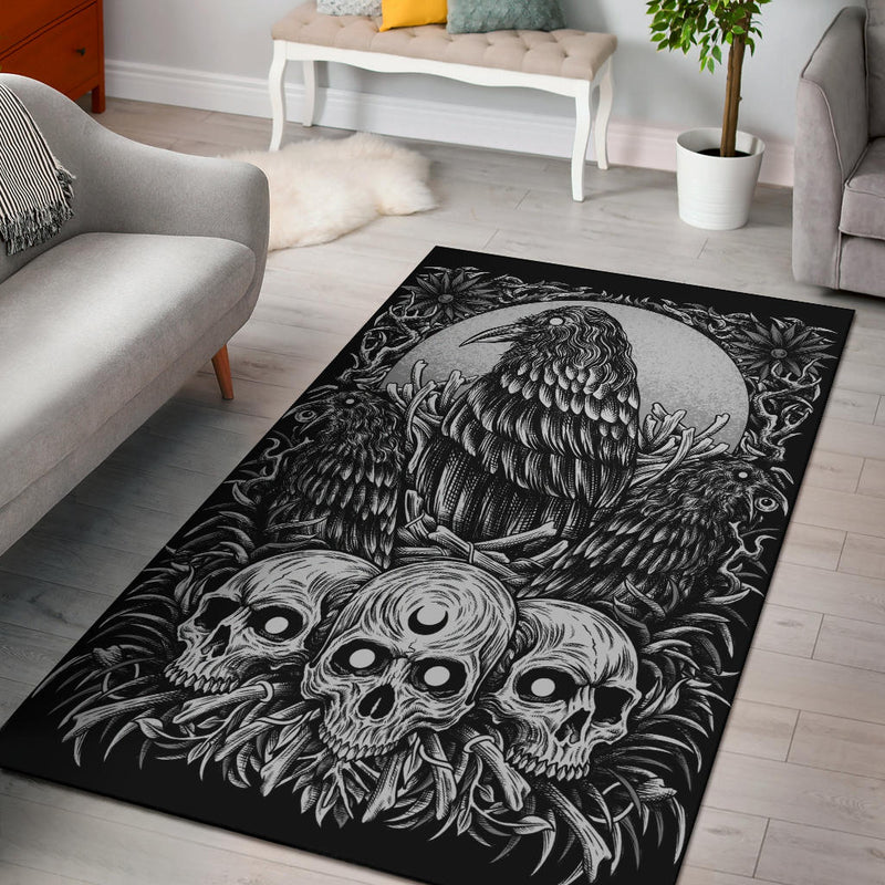 Skull Goth Occult Black Crow Area Rug New Dark Version
