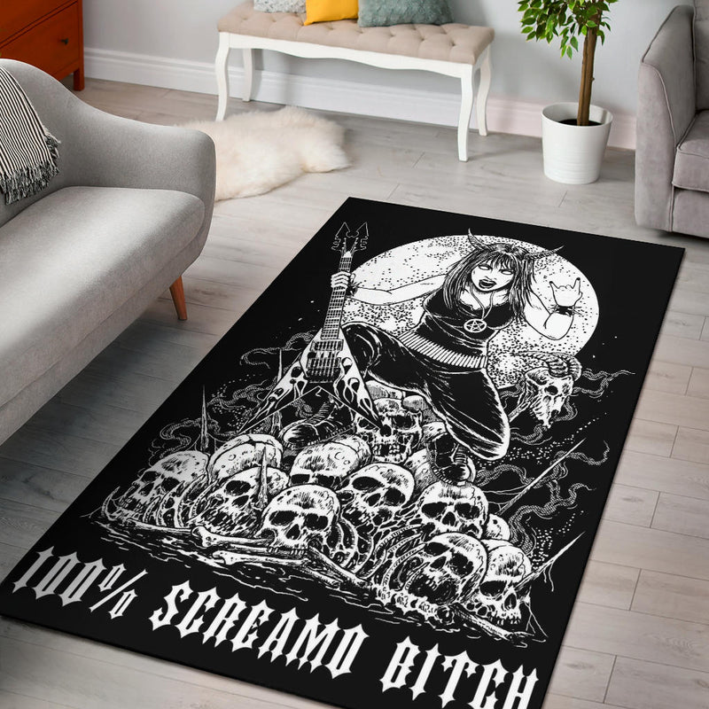 Skull Inverted Pentagram Guitar Demon Metal chick Area Rug