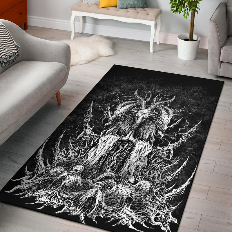 Skull Satanic Goat Original Large Print Area Rug Black And White