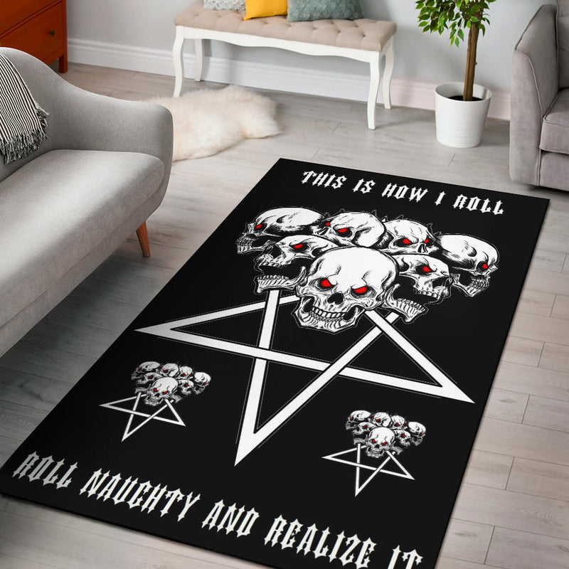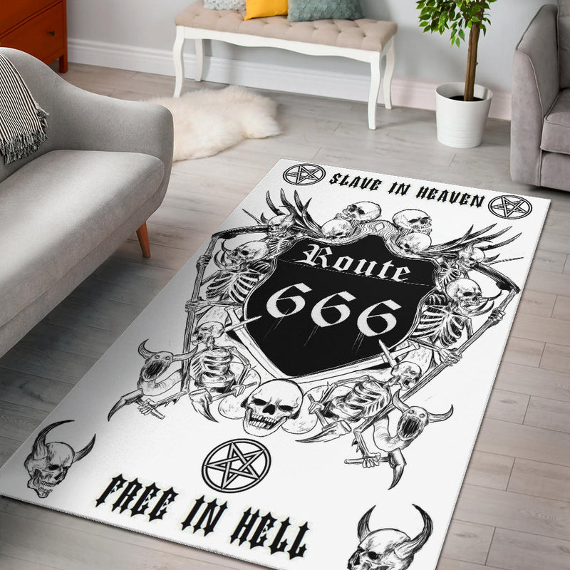 Satanic Skull Demon Inverted Pentagram Route 666 Area Rug