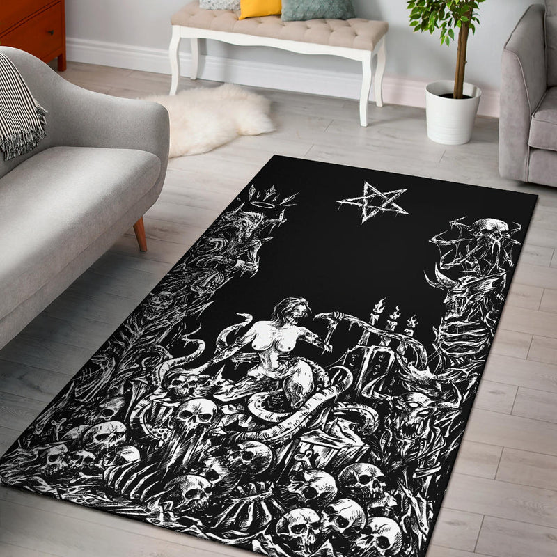 Skull Satanic Demon Satanic Pentagram Orgy Of The Damned Area Rug