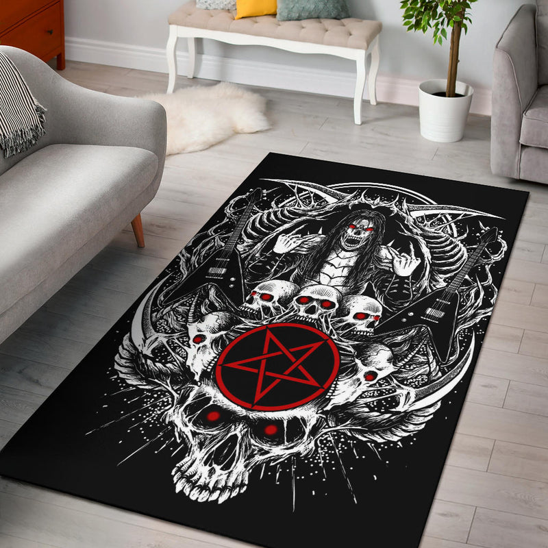 Skull Inverted Pentagram V Guitar Metal Head Area Rug