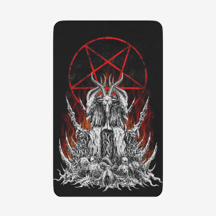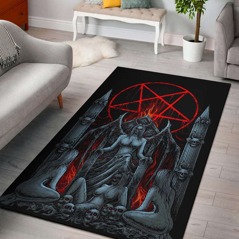 Skull Satanic Pentagram Flame Demon Lust Throne Area Rug Color Version