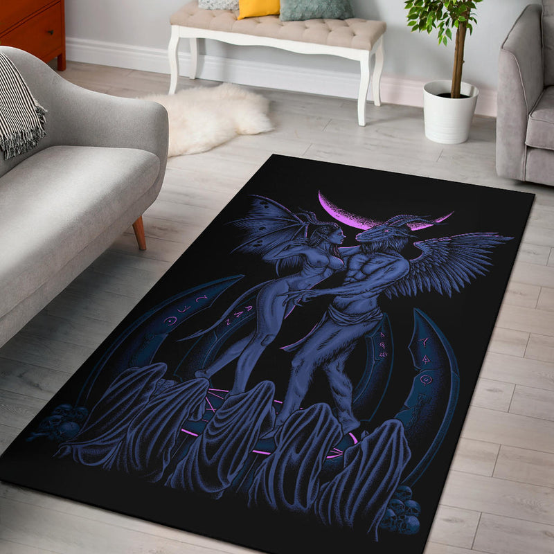 Skull Satanic Pentagram Baphomet Erotic Demon Shrine Area Rug Erotic Blue Pink