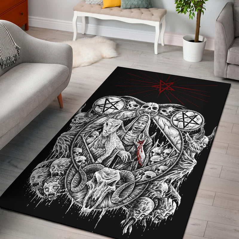 Satanic Skull Altar Occult Metalbreed Area Rug