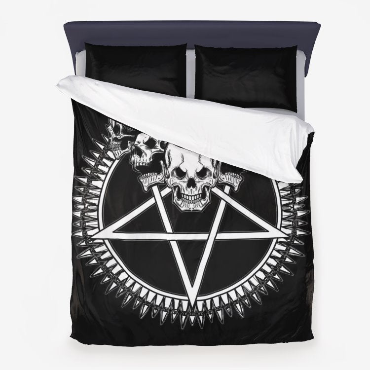 Skull Spike Death Metal Inverted Pentagram 3 Piece Microfiber Duvet Set